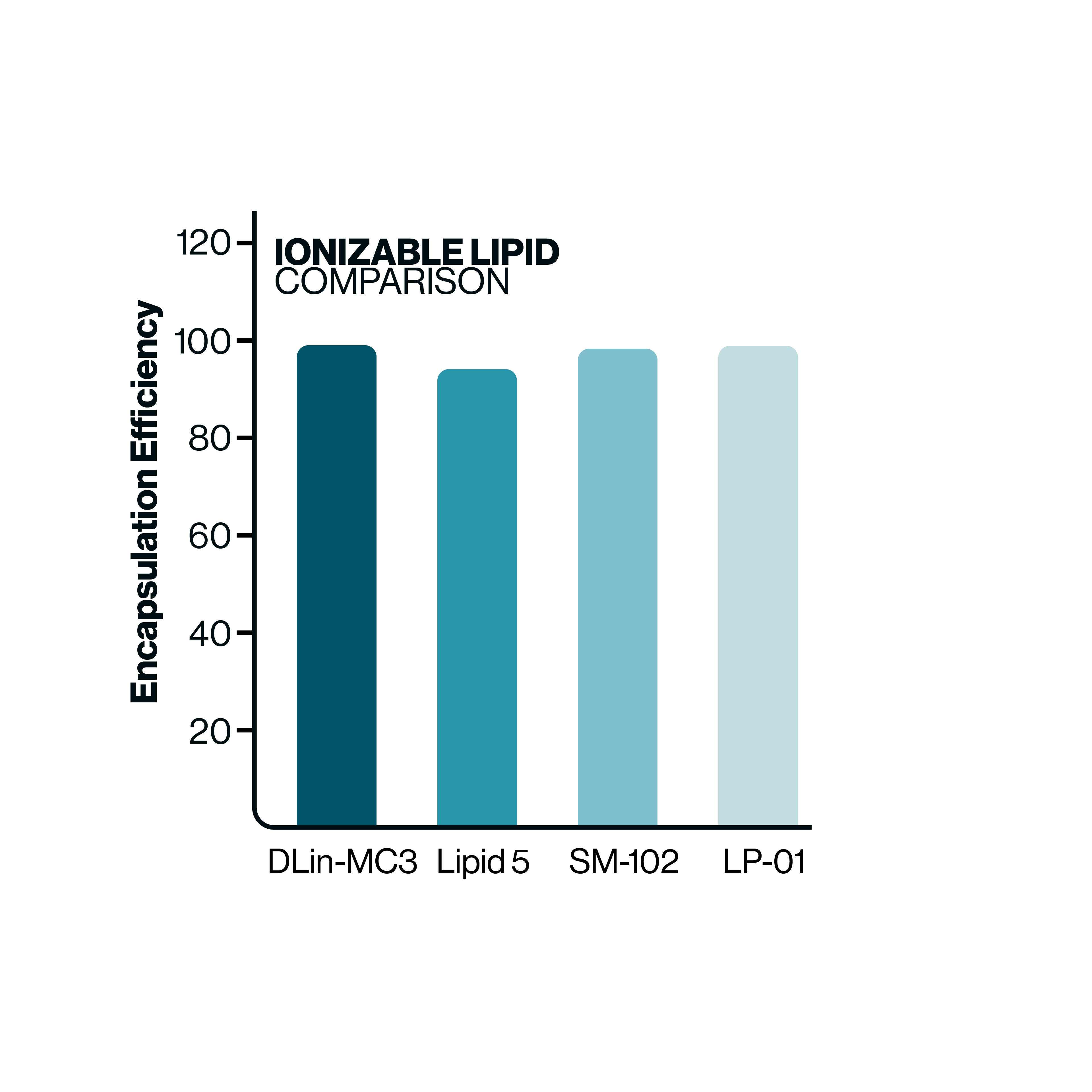 You’re in control. Decide on the cargo (RNAs, DNA), ionizable lipids, helper ratios, N:P, or process variables.